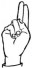 На ћирилици написано КАЋА ВЕЉИЋ састоји се из 9 слова [?]. Исписано ћириличном једноручном азбуком за глувонеме: